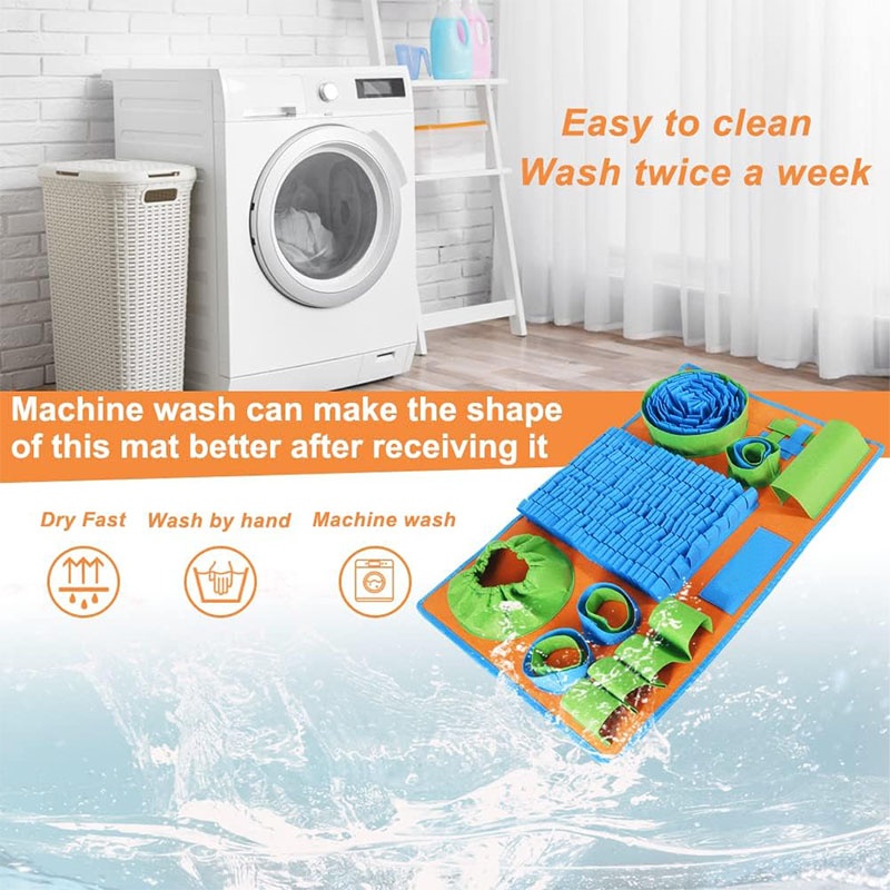 WASHABLE DESIGN - Due to long-term transportation, the snuffle pad will be flat and folded when it is first opened. We recommend that you wash it with a washing machine or hand before use, so that it can quickly become close to what it looks like in the picture.